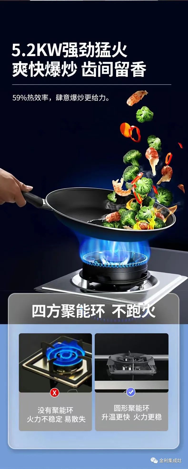 精于蒸,善于烤,更能煎炒烹炸的金利集成灶,集油烟机、燃气灶、蒸箱、烤箱于一体,拥有99.96%油烟吸净率,为健康保驾护航的同时,助力国人更省时省力地烹饪美味佳肴。